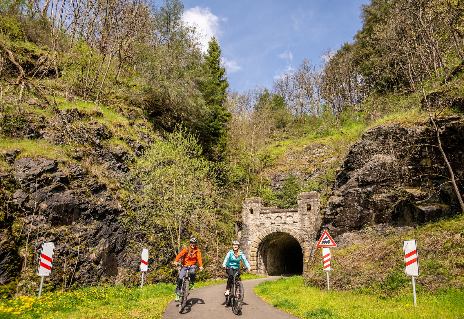 Was diese Tour auszeichnet, ist ihr Rhythmus: sanftes Anrollen auf ehemaligen Bahntrassen, steile Höhenzüge durchqueren, kurvige Flusstäler erleben.